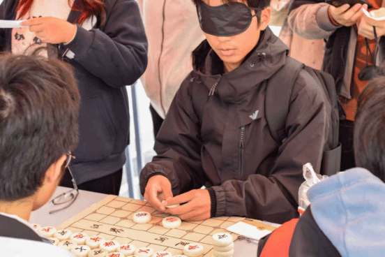 同学们蒙眼后触摸象棋棋子,通过棋子上凸起的纹路辨别“将”“兵”“马”“卒”等汉字。指尖划过木质棋面的触感,让大家体会到视障群体通过触觉获取信息的专注,也读懂了“触摸文字”背后的坚韧。