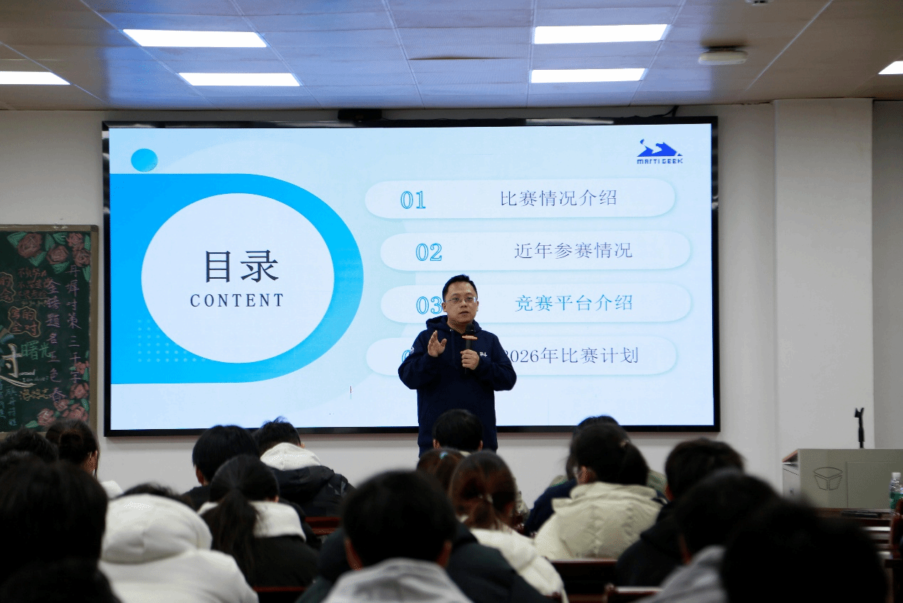 宣讲会上,李轩涯博士围绕码蹄杯程序设计大赛的发展背景、赛事定位、赛制规则、竞赛平台与评测机制、2026年比赛计划等内容进行了系统介绍,并结合近年来全国高校参赛与获奖情况,深入解析了赛事在提升学生算法设计能力、工程实践能力与创新能力方面的重要作用。他指出,码蹄杯注重真实工程问题与计算思维的深度融合,强调“以赛代练、以赛促学”,为高校学生提供了高水平、工程化、实战导向的竞赛平台。在互动交流环节,李轩涯博士结合百度公司在人工智能、大数据与软件工程等领域的技术实践与人才需求,分享了企业对计算机类专业学生能力结构和职业素养的最新导向,并就同学们关心的竞赛准备策略、技术方向选择、能力提升路径以及实习与就业发展等问题进行了耐心细致的解答,现场气氛热烈。