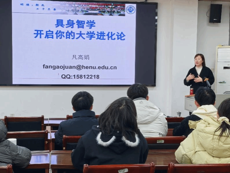凡高娟博士以《具身智学:开启你的大学进化论》为题开讲。她从贴近学生生活的手机应用技术架构切入,生动拆解专业课程与工程实践的内在关联,并结合指导“挑战杯”等科创赛事的丰富经验,详细讲解如何将生活灵感转化为智能应用成果。凡博士引导同学们以“训练自身智能体”的思维规划大学四年,鼓励大家主动构建知识体系、提升实践能力。